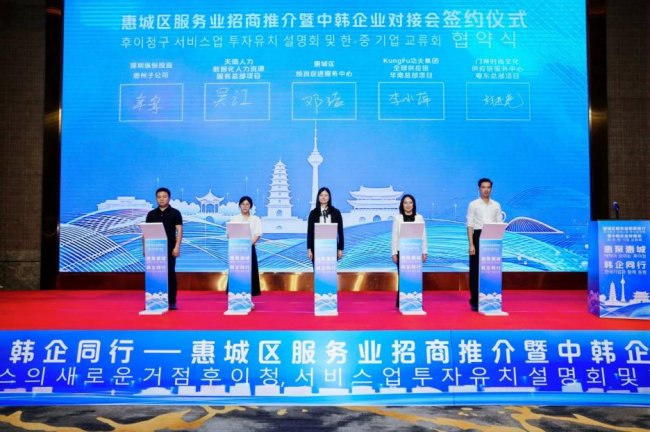 为加快推进惠城区服务业提质增效,4月14日,惠城区服务业招商推介暨韩企产业交流对接会成功举办。活动以产业为桥、服务为媒、共赢为目标,吸引约140家企业负责人齐聚鹅城,共话合作机遇、共商发展蓝图。惠城区政府有关负责领导及有关职能部门领导出席活动。